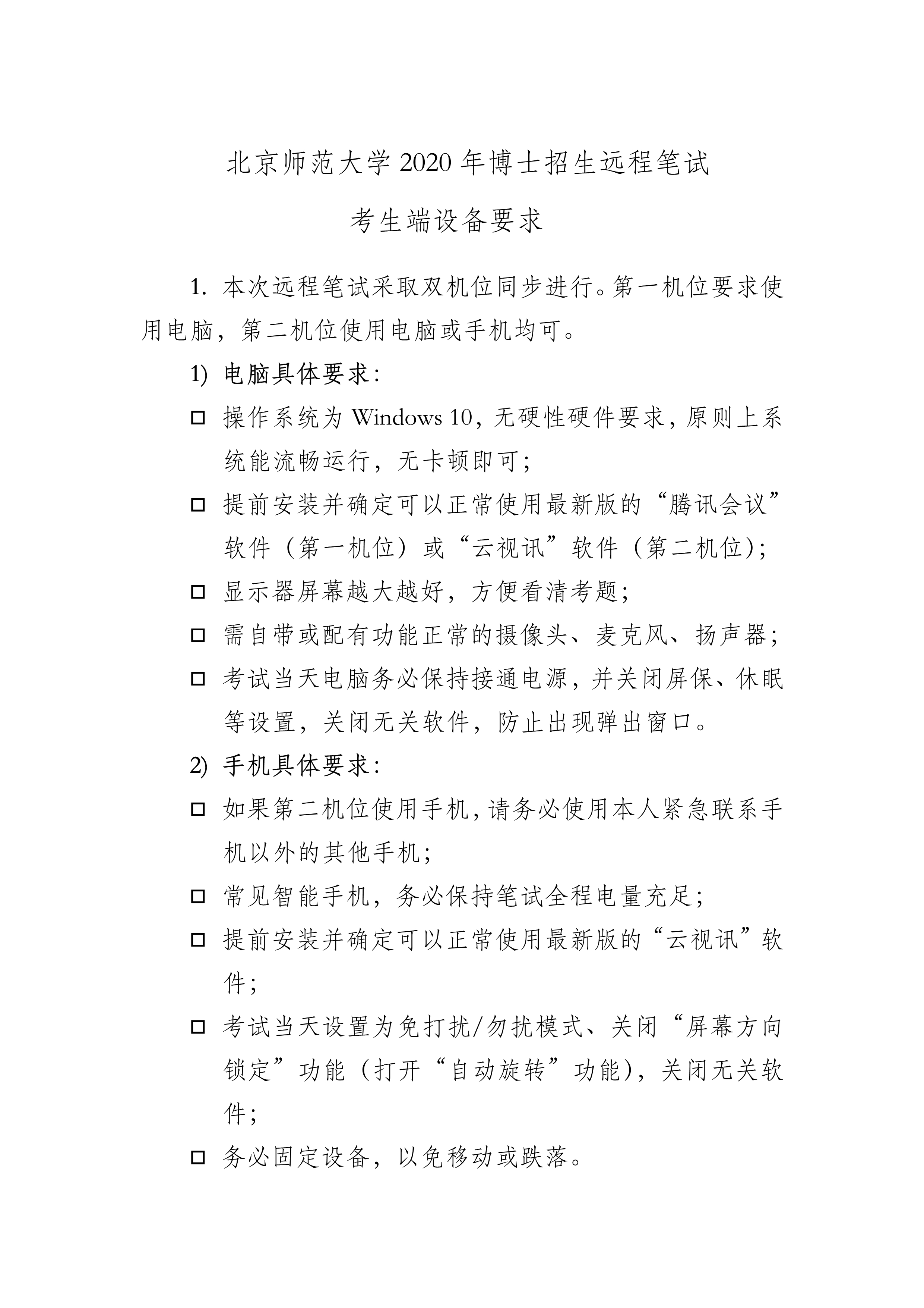 High漫画 2020年博士招生远程笔试考生端设备要求